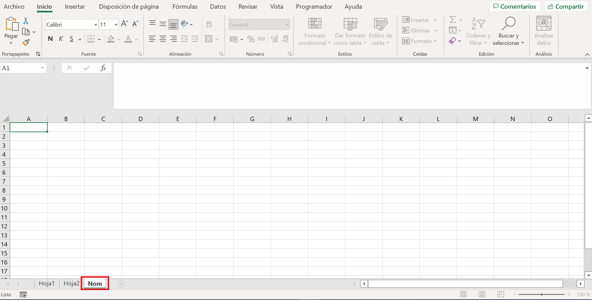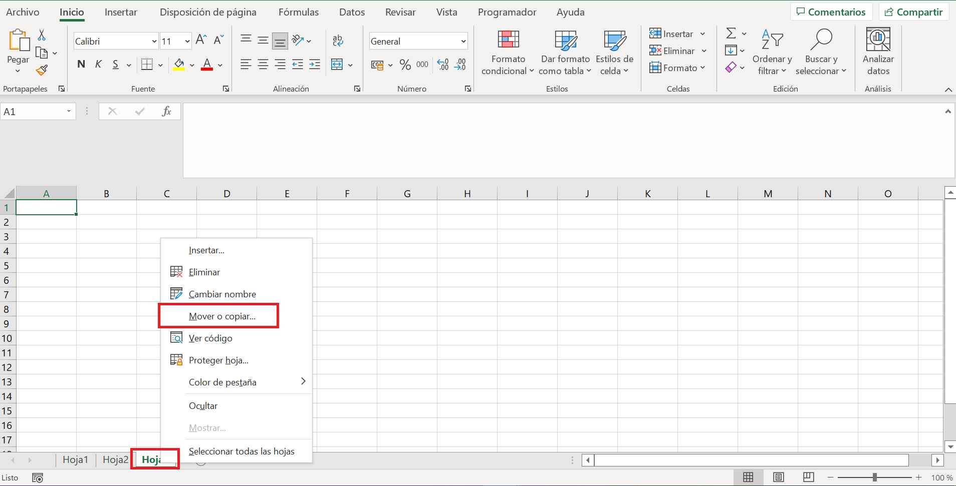 - Para seleccionar una sola hoja, haz clic sobre su pestaña.