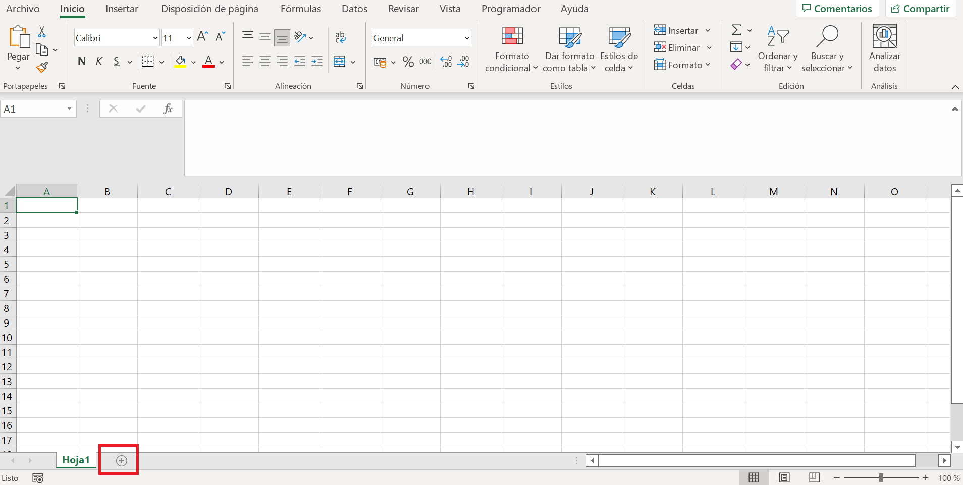 Para agregar una hoja de cálculo, haz clic en el botón de agregar