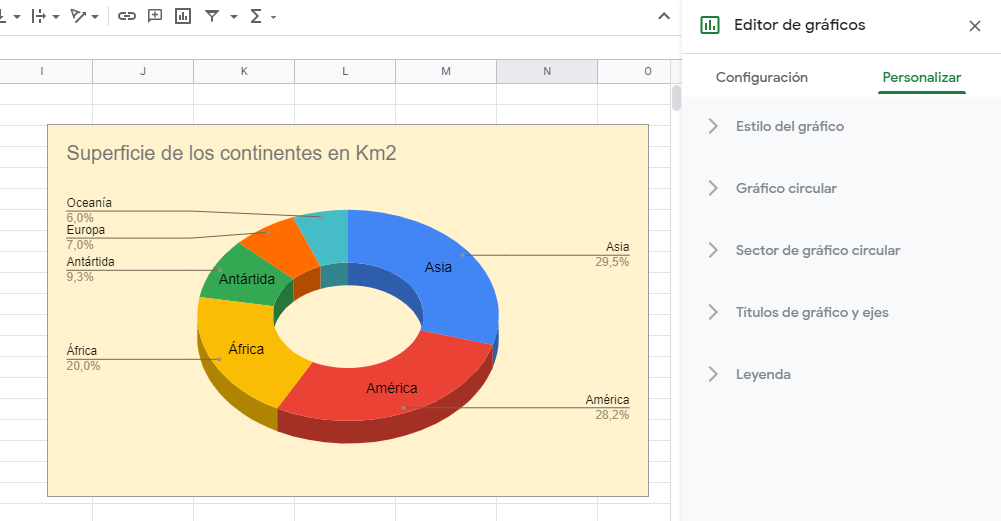 En la pestaña Personalizar podemos cambiar más cosas como el estilo del gráfico, pudiendo elegir un gráfico en 3D, los títulos, la leyenda, los colores, la cuadrícula, etc.