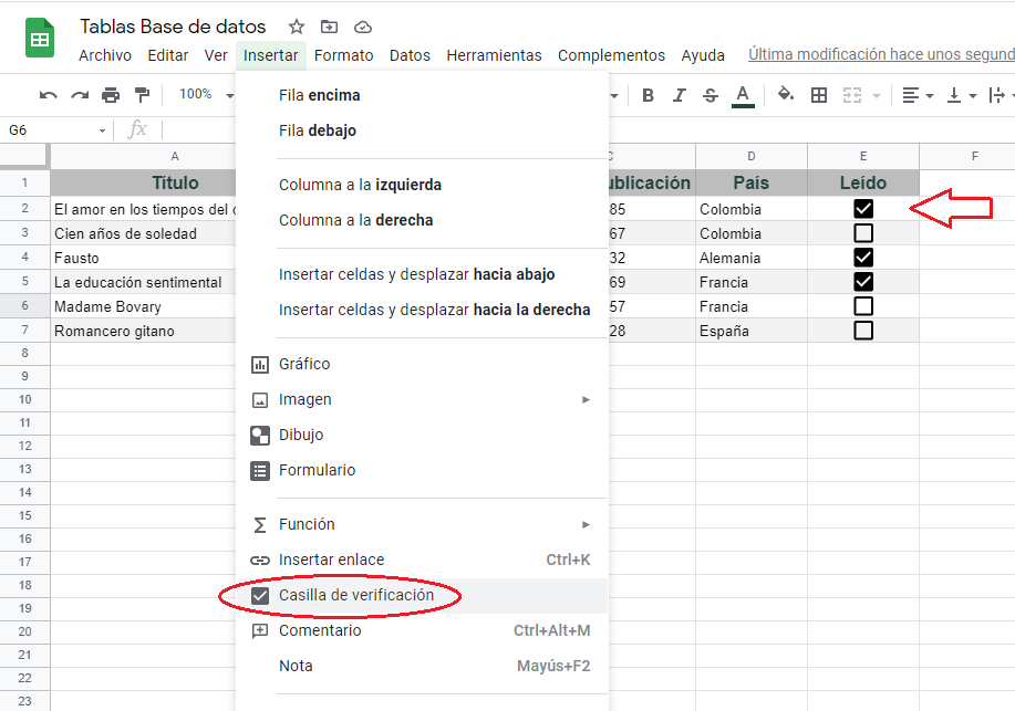 A veces es útil poner una casilla de verificación en una celda de nuestra tabla de datos para por ejemplo, marcar los libros que hemos leído, las películas que hemos visto, etc.