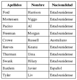 - Ordena la tabla por Nacionalidad y dentro de la Nacionalidad, por Apellidos.