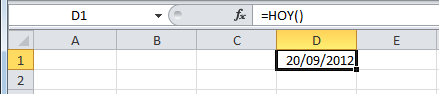 La función HOY en Excel no tiene parámetros así que para utilizarla solo tienes que colocar su nombre seguido de paréntesis en la celda donde quieres ver la fecha actual: