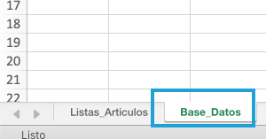 Ahora vamos a crear una nueva hoja, podemos llamarla “Base_Datos”,