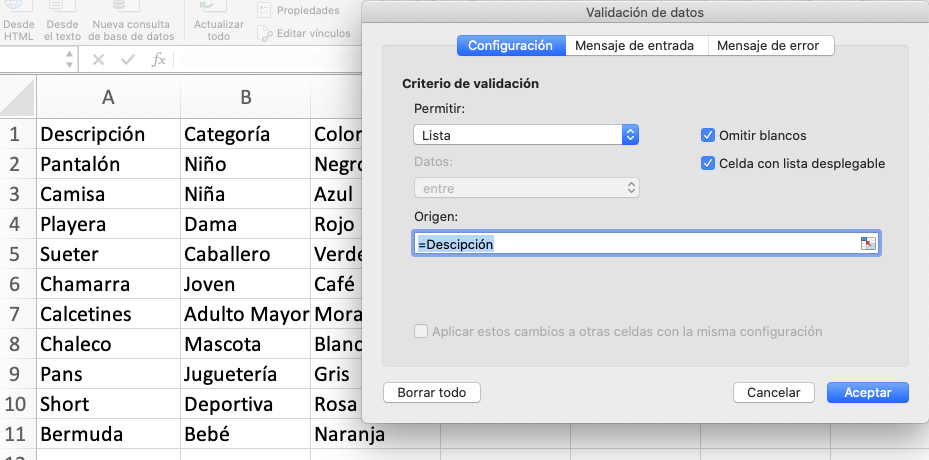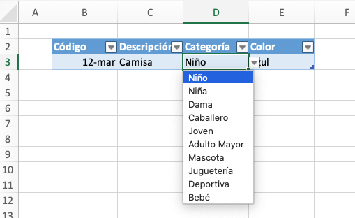 Si olvidaste agregar una categoría más, lo primero que harás es agregar más elementos en la hoja en donde esta tus categorías.En el menú Fórmulas , hacemos clic en Administrador de nombres En la ventana que se abre vamos a seleccionar el rango que usamos, en este caso es Categorías, y vamos a modificar la selección de celdas, agregando la celda que contiene los nuevos valores para nuestra lista y finalmente presionamos el botón Cerrar , y cuando Excel nos pregunte si queremos guardar los cambios, le decimos que Si.
