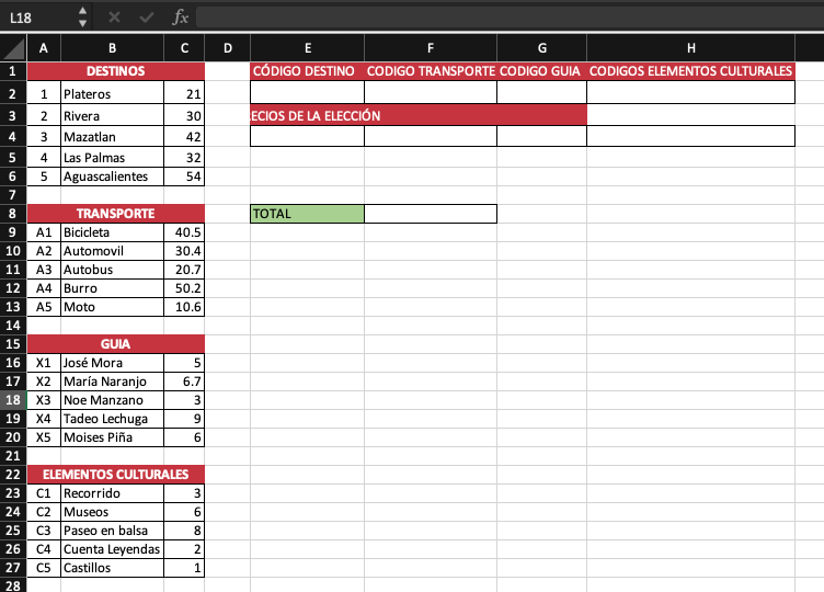 En este ejercicio se resolverá y calculara un problema hipotético sobre una agencia de viajes, donde construiremos una hoja de excel para que nos muestre una cotización de acuerdo al guía de viaje, de lugar y precio