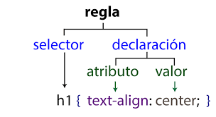 Las hojas de estilo están formadas por reglas, y las reglas están formadas por el selector y entre llaves las declaraciones separadas por punto y coma.