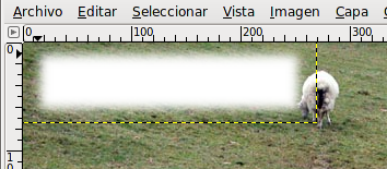 - Si haces clic con el botón derecho sobre la imagen y eliges Seleccionar --> Invertir, la parte seleccionada pasa a ser la exterior al rectángulo. Ahora con el botón derecho del ratón elige Editar --> Limpiar (Supr). La zona seleccionada queda borrada. Quita la selección (menú Seleccionar --> Ninguno) para poder seguir trabajando en la imagen. El resultado puedes observarlo a continuación. Guarda el trabajo.