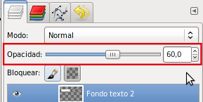 - Transparencia de las capas. Vas a dotar de transparencia a estas dos capas, dado que van a ser el fondo del texto que añadiremos a continuación. De esta forma parecerán más integradas en la imagen y no un pegote sobre ella. Selecciona cada una de las capas en la Ventana capas y coloca un valor de 60 en Opacidad a cada una de ellas.