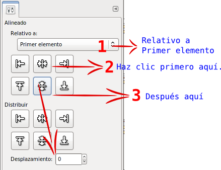 - Para alinear las capas seleccionadas primero debemos hacer clic en el botón de alineación sombreado en verde y, después, en el botón de alineación sombreado en rojo. Tras ese proceso las dos capas deben quedar situadas como se muestra en la siguiente imagen.