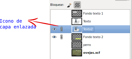 Haz clic en la zona donde se ve el eslabón de la cadena (normalmente no es visible el eslabón) y consigues que las dos capas queden enlazadas y que puedas aplicar sobre ellas algunas herramientas, por ejemplo Mover.