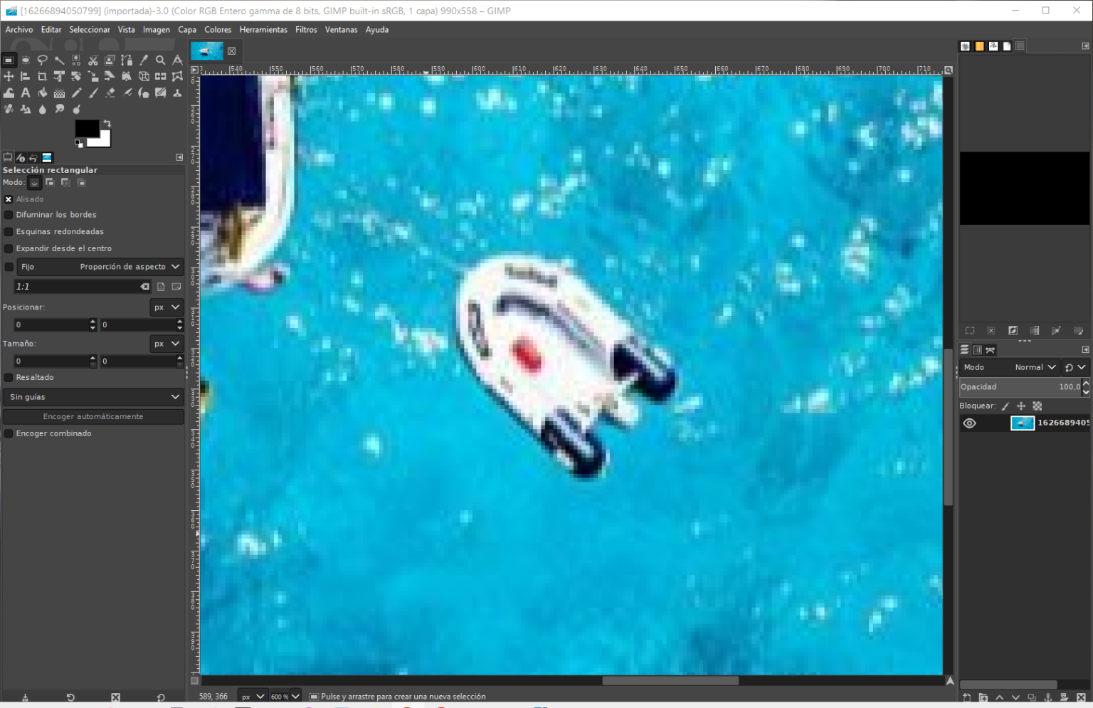 Ahora has mucho zoom y sitúa en la parte central de la imagen aquella parte que desees eliminar.