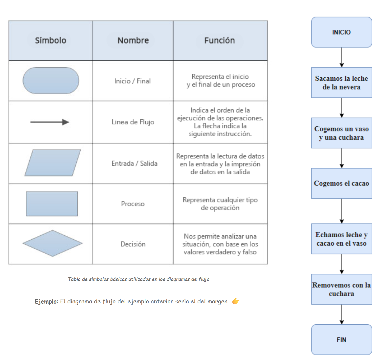 En el caso del ejemplo del vaso de leche con cacao, podríamos modificar el final del algoritmo para incluir un bloque de decisión que nos permita decidir si hay suficiente cacao en el vaso o no.