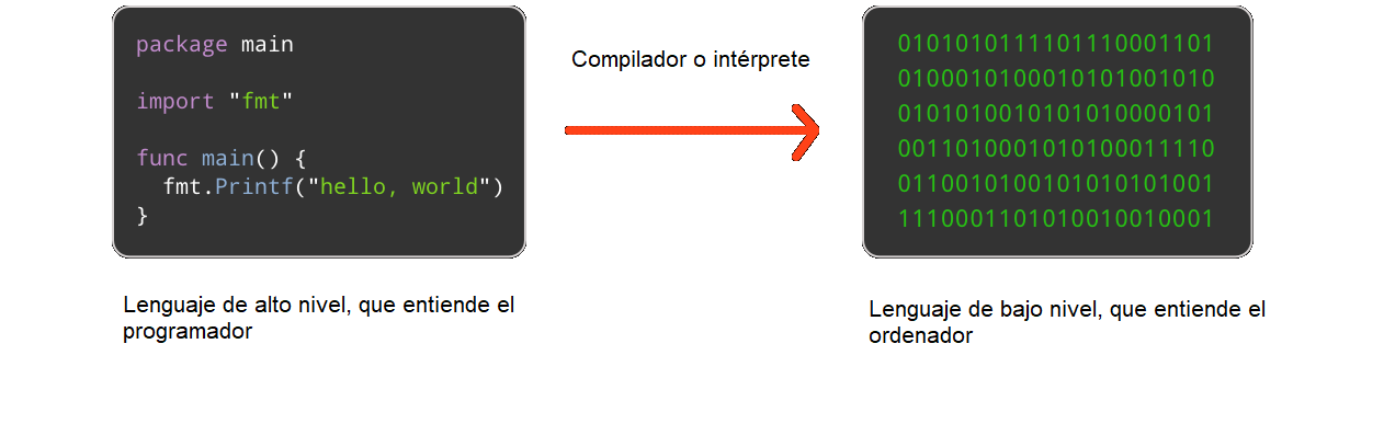 Cuando una persona escribe un programa, lo hace en un lenguaje de alto nivel, que es comprensible para la misma, pero que tiene que ser transformado en código máquina para que el ordenador pueda interpretarlo.