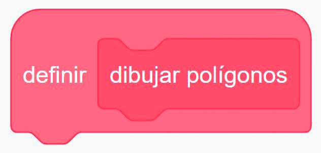 - Comprueba que ha aparecido en tu espacio de programación un bloque nuevo, definir dibujar polígonos, similar a los bloques de inicio del menú Eventos. Anida debajo de dicho bloque todo el programa anterior, excepto la instrucción al hacer clic en bandera verde.