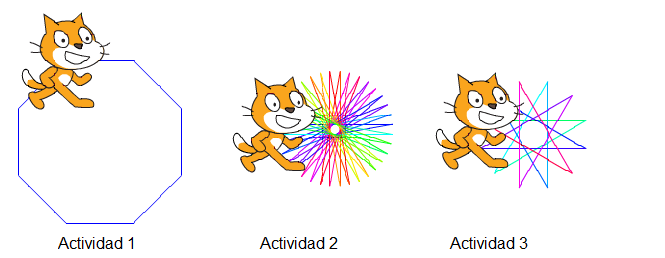 Observa como en el ejemplo anterior se han empleado las órdenes "subir lápiz", "borrar", "ir a x:-120 y:80" y "apuntar en dirección 90º" para que el programa siempre se inicie con la pantalla en blanco y con el gato situado en un punto concreto.