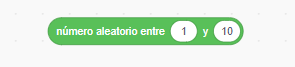 Para obtener un número al azar o "aleatorio" entre dos cantidades, se utiliza el siguiente bloque