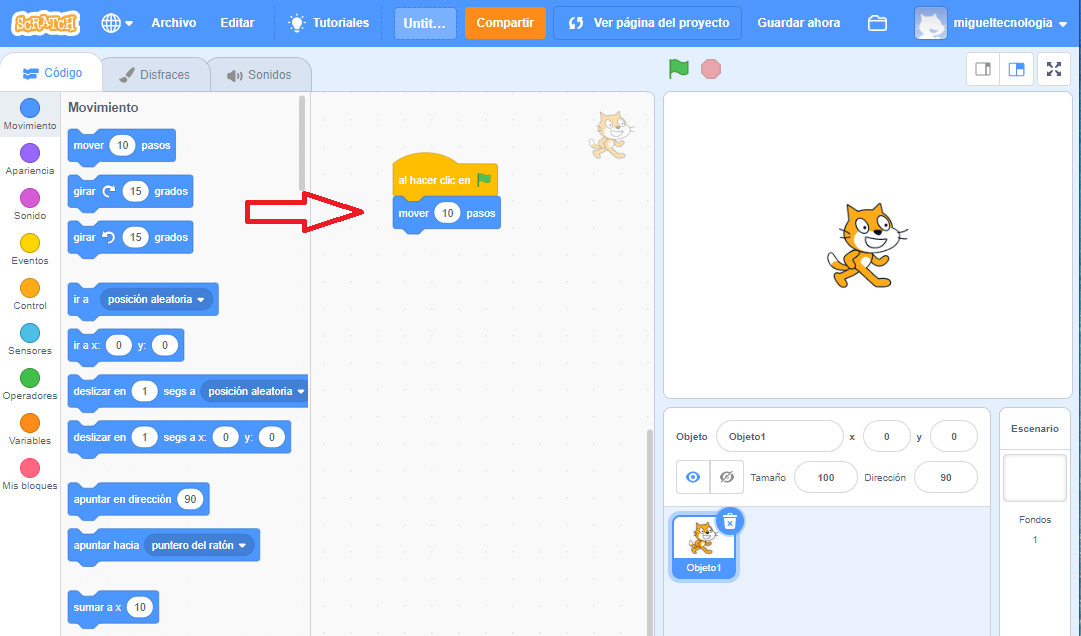 Ejercicio 4. Programar en Scratch