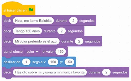 Por último, podemos hacer que nuestros personajes hablen con la extensión "Texto a voz" de Scratch.