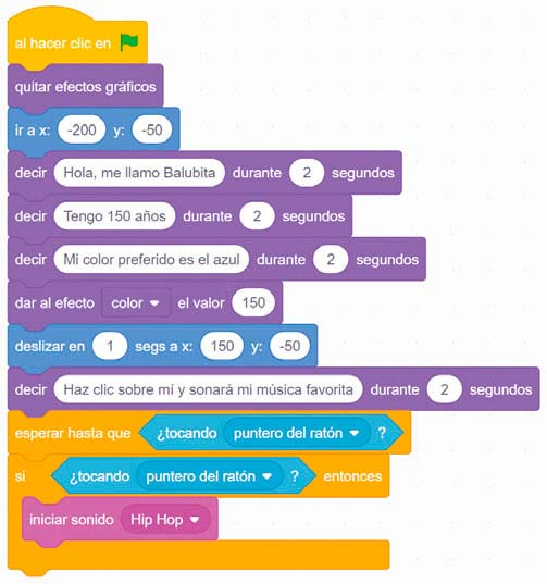 - Copia el programa de la figura de abajo para el personaje que aparece por defecto.