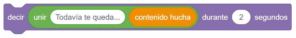 - A continuación, fuera del bloque si..., entonces / si no, incluye una instrucción para que el personaje te diga el contenido de la hucha. Usa para ello la instrucción decir, de la categoría Apariencia, junto con la instrucción unir, de la categoría Operadores. La instrucción debe quedar así :
