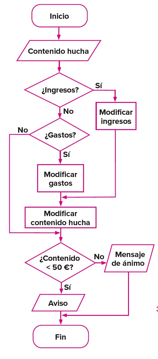 - El problema consiste en crear una calculadora que vaya restando los gastos que diariamente vayas introduciendo y sumando los ingresos que se produzcan. Además, para evitar que te quedes sin dinero, te avisará cuando en la hucha haya 50 euros o menos. Cuando haya más de 50 euros, la calculadora te dará un mensaje de ánimo para que continúes ahorrando.