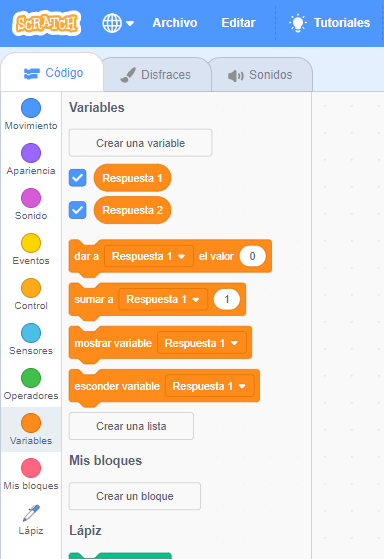 Solo aparecen los bloques naranjas cuando creamos al menos una variable.