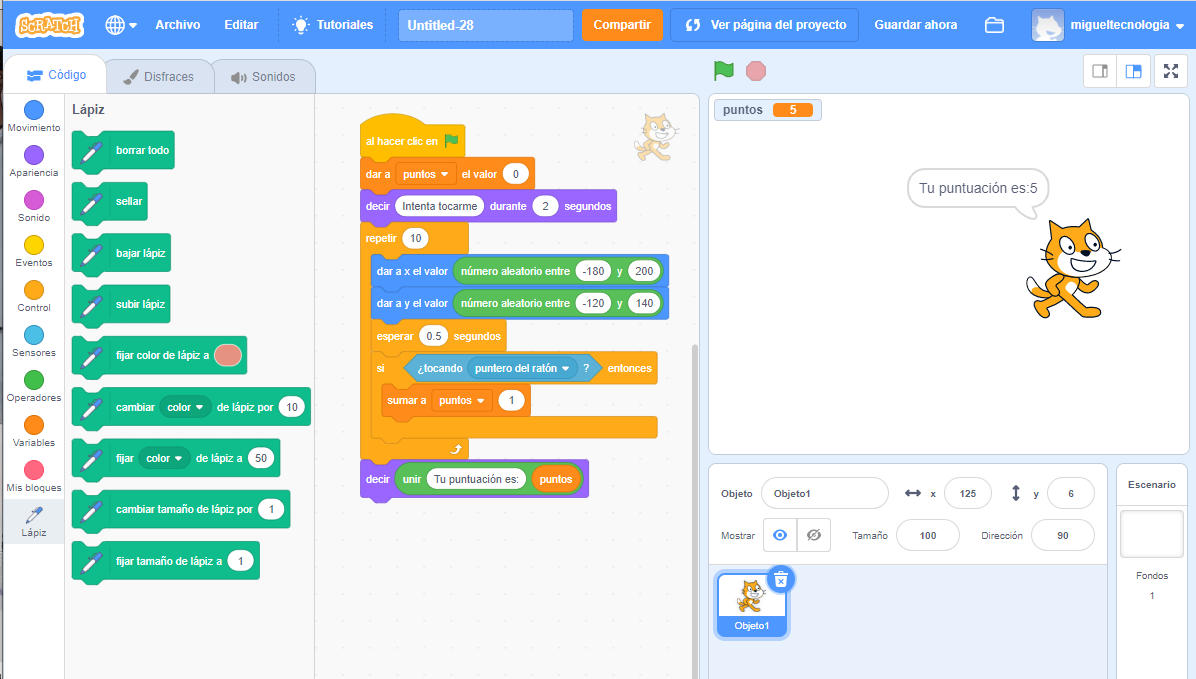 Ejercicio 4. Programar en Scratch