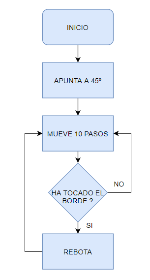 Para ello diseñamos el siguiente diagrama de flujo para la bola: