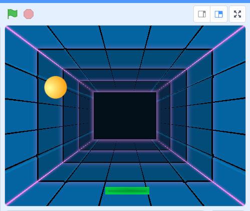 Programa los objetos para que la bola esté continuamente rebotando contra los bordes y la pala se pueda mover mediante el ratón, como en la siguiente imagen: