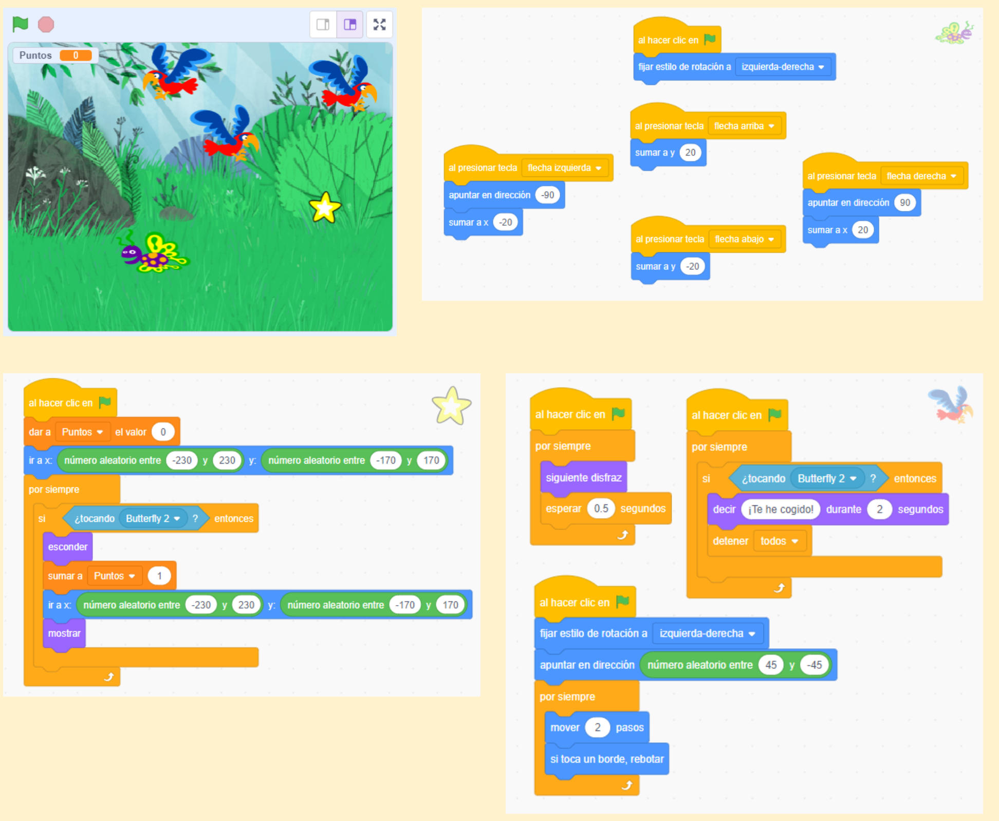 Abre Scratch y realiza el juego "LOROS ASESINOS" a partir de las siguientes imágenes.