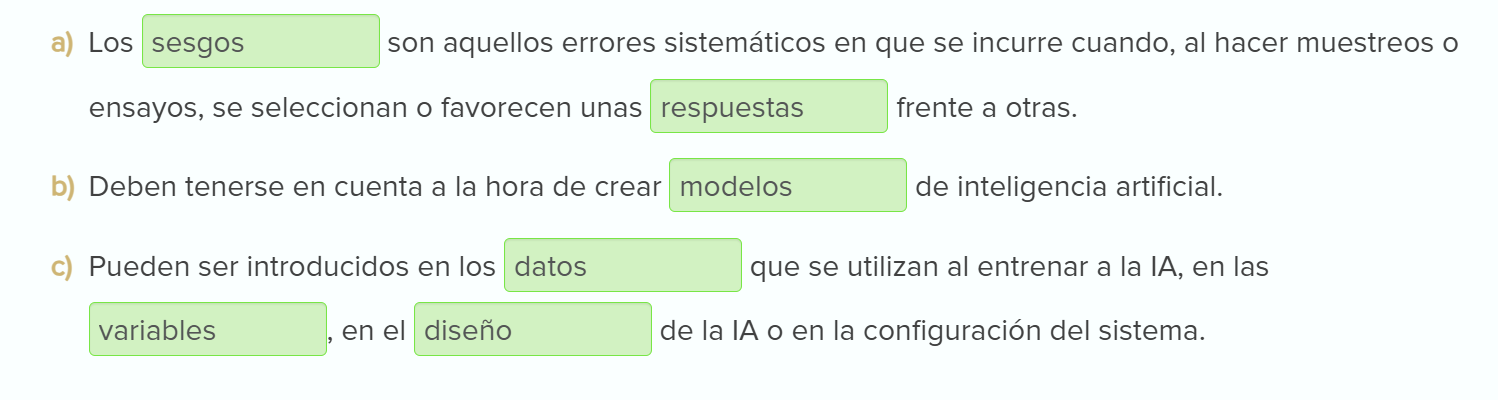 - Sesgos: si los datos que se usan para entrenar la IA son injustos o tienen errores, la IA también puede tomar decisiones injustas.