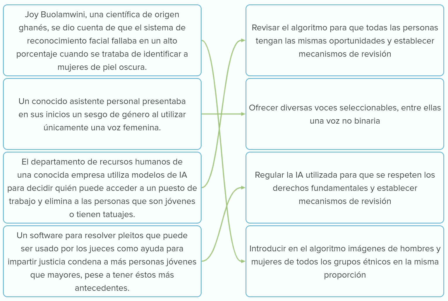 Relaciona cada sesgo identificado (columna izquierda) con su solución (columna derecha).