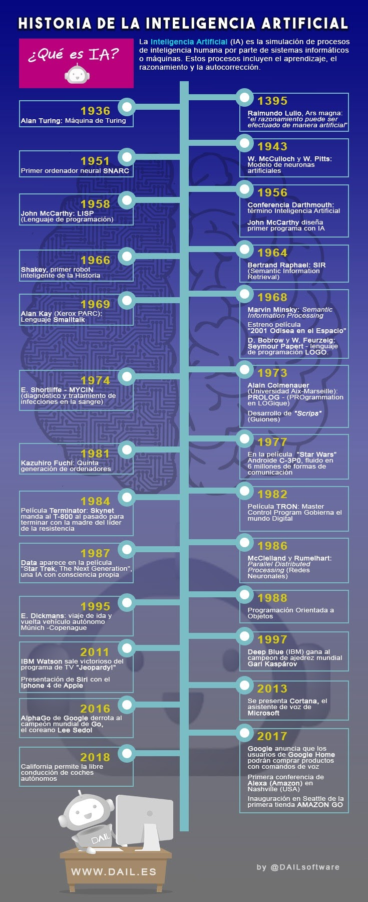 Vamos a ver un resumen de la Historia de la Inteligencia Artificial mediante la siguiente infografía: