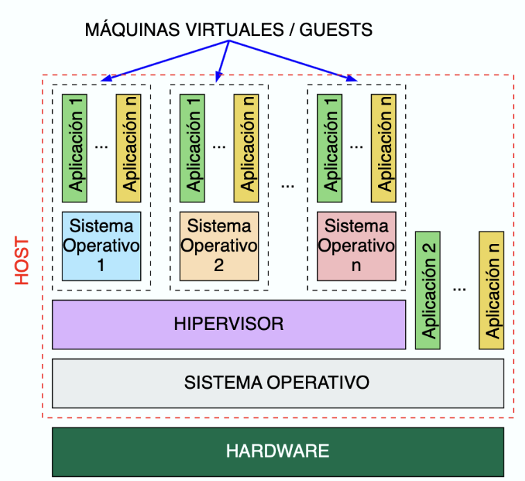 - El sistema operativo que tiene el control del hardware recibe el nombre de host (anfitrión).
