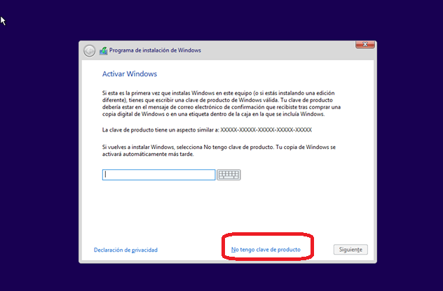 Al crear la nueva máquina virtual, en la parte inferior, desactiva la casilla “Instalación desatendida” o pulsa el botón “Omitir instalación desatendida”.