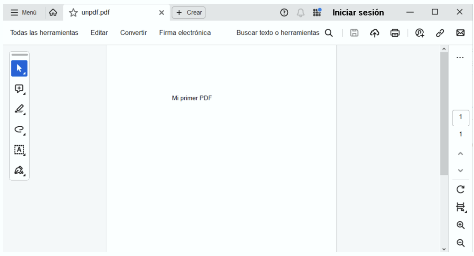 Si ahora vamos al directorio donde se encuentra nuestro archivo de código, veremos cómo se ha creado un archivo nuevo llamado unpdf.pdf con este contenido: