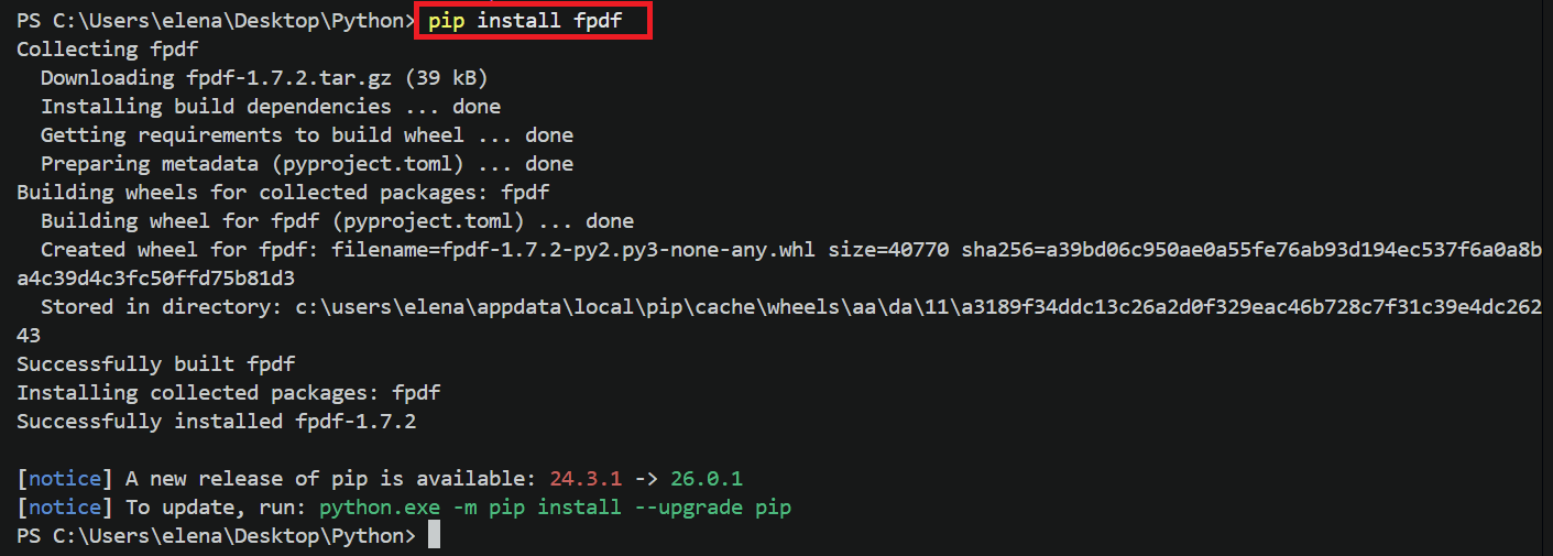Por ejemplo, usando el módulo fpdf podemos crear un PDF con muy pocas líneas de código: