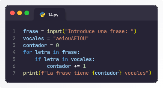 Escribe un programa que pida una frase y cuente cuántas vocales tiene.