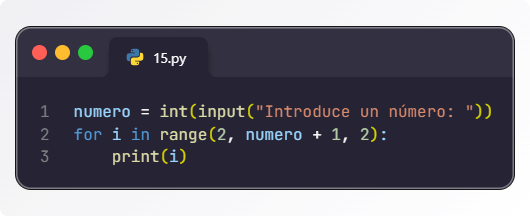 Escribe un programa que pida un número y muestre todos los números pares desde 1 hasta ese número.