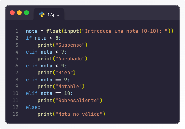 Las estructuras condicionales permiten ejecutar bloques de código solo si se cumplen ciertas condiciones. Python utiliza las palabras clave if, elif (abreviatura de «else if») y else para definir estas condiciones.