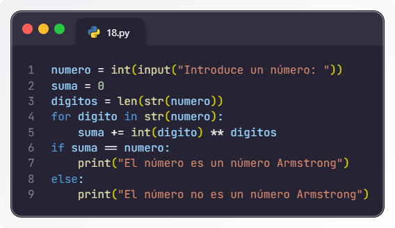 Escribe un programa que pida al usuario un número y muestre si es un número Armstrong (un número igual a la suma de sus propios dígitos cada uno elevado a la potencia de la cantidad de dígitos).
