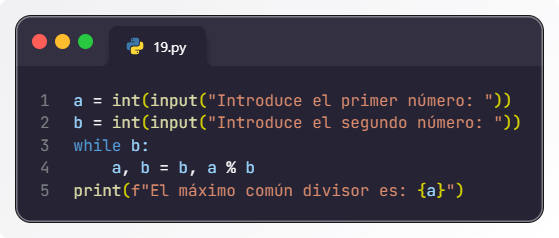 Escribe un programa que pida dos números y muestre su máximo común divisor (MCD).