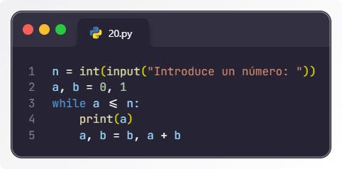 Escribe un programa que pida un número y muestre la secuencia de Fibonacci hasta ese número.