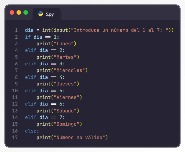 Escribe un programa que pida un número del 1 al 7 y muestre el día de la semana correspondiente.