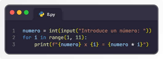 Escribe un programa que pida un número y muestre su tabla de multiplicar del 1 al 10.