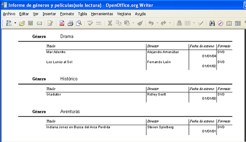 Ejemplo informe películas