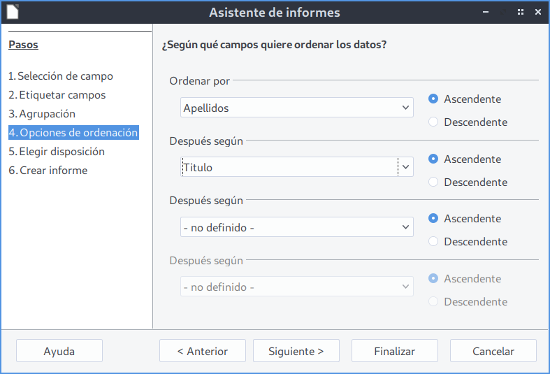 Ordenación de los campos -