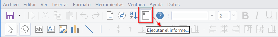 - Utilizamos el icono Ejecutar informe para comprobar el resultado sin salir del diseño.